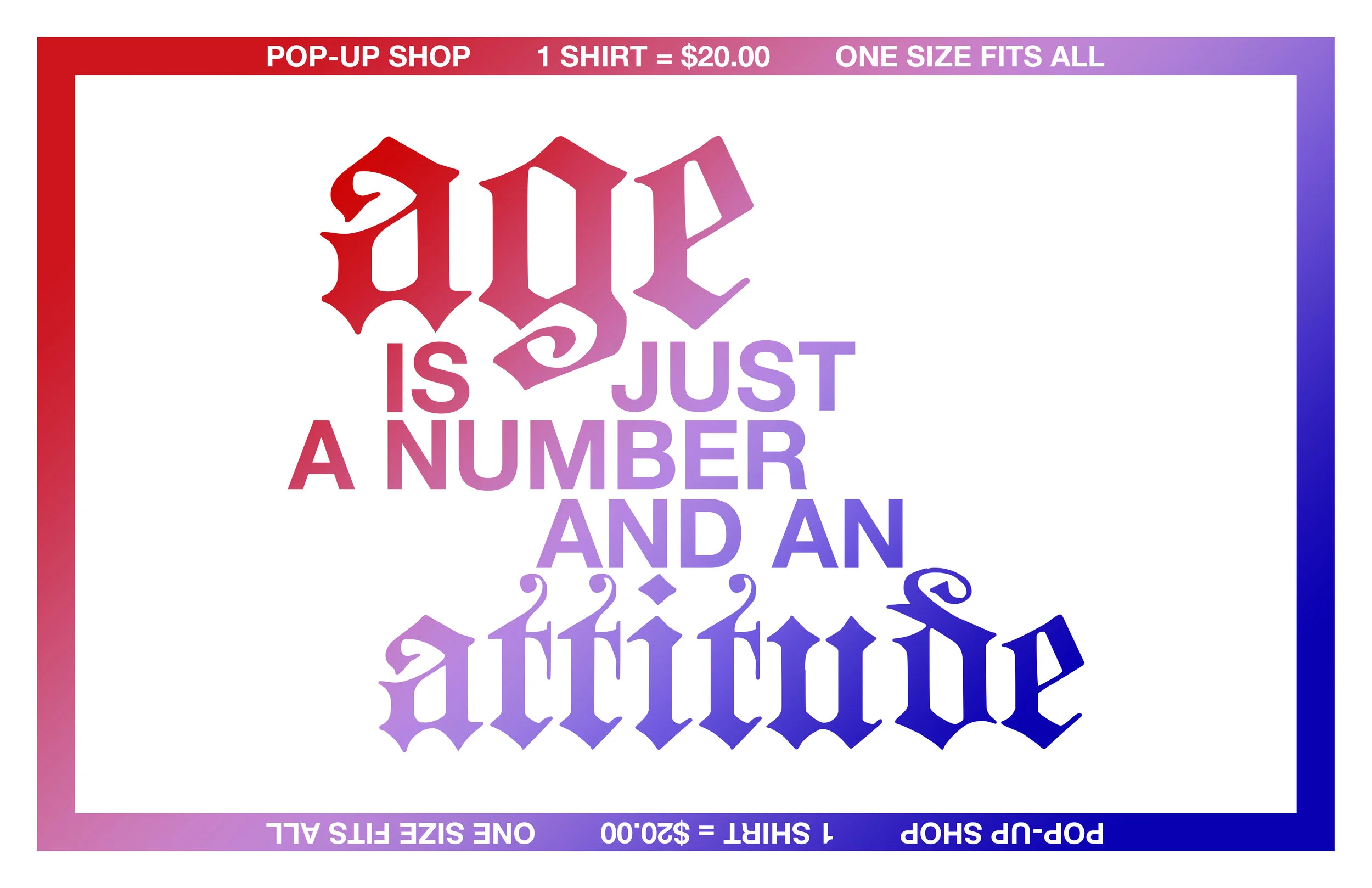 he “Ageism Pop-Up Shop” was an idea I had inspired by the idea of ONE SIZE FITS ALL. Can one size actually fit all? The point was to create a mobile station where I could sell merchandise that could be appealing to people of any age or gender.
